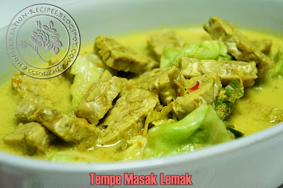 I have not been cooking Masak Lemak Cili Api for quite some time.... found a packet of Tempe (fermented soy bean cake) and round cabbage in the fridge and herewith the outcome.... I love it! However, nobody can beat my mother's delicious Masak Lemak which surely very creamy and flying hot. My version is a lot thinner using skimmed coconut milk for health reason.